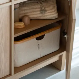 Die Kyo Kommode verbindet warme Holztöne mit modularer Vielseitigkeit und eignet sich auch über das Babyzimmer hinaus.