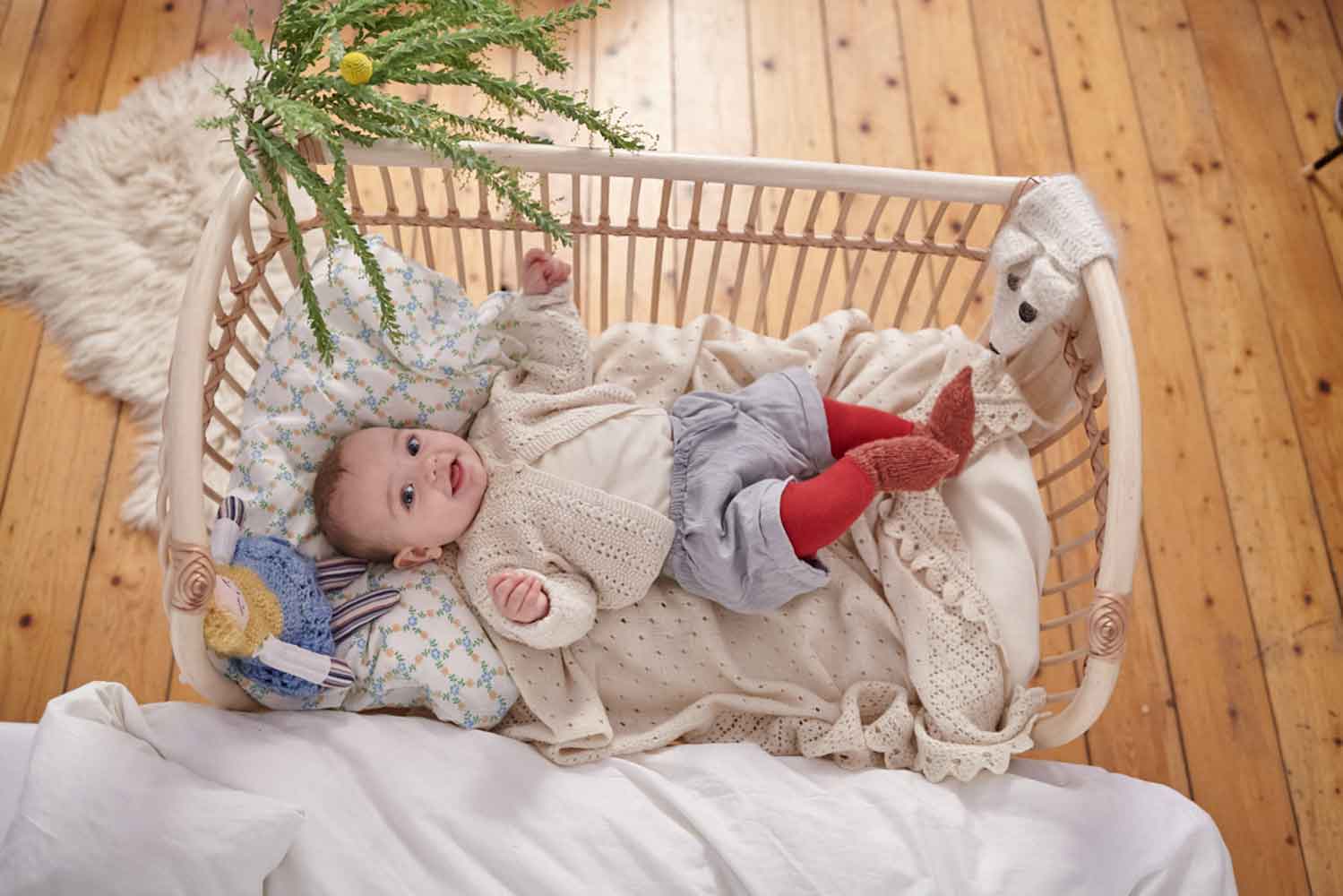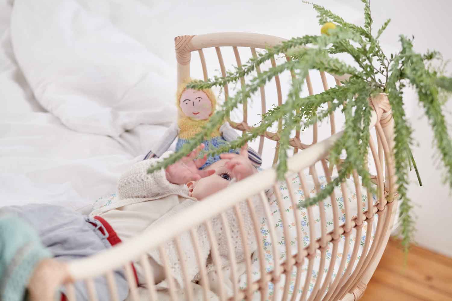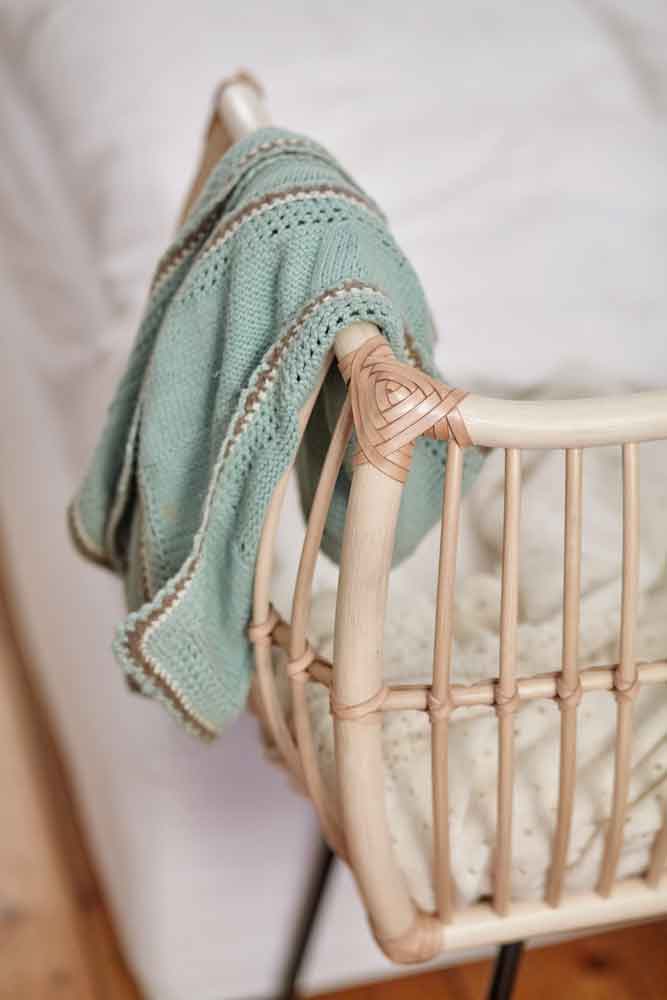 Die schönen Babybetten von Bermbach gibt es jetzt auch in einer veganen Variante. Statt Lederriemen werden Baumwollschnüre um die Stangen gewickelt, die dem Rattankorb Stabilität verleihen. Die natürlichen Materialien Rattan und Baumwolle ergänzen sich perfekt.