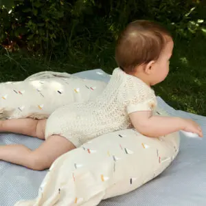Bequemes Stillkissen von Dear April mit langen Bändern. Größe 70x30x20 cm. Aus weichen, atmungsaktiven Materialien – ideal zum Stillen, Flaschenfüttern und als Schwangerschaftsstütze.