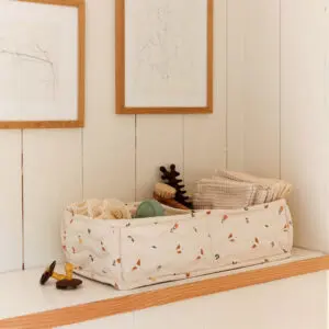 Praktischer Aufbewahrungskorb von Dear April (44x22x12 cm). Gesteppt, gepolstert und ideal für Windeln, Spielzeug und Pflegeprodukte.
