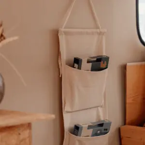 Praktischer Organiser von Dear April mit 3 Canvas-Fächern in Pure Nature. Langlebig, dekorativ und skandinavisch inspiriert.