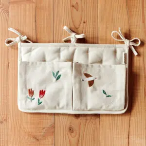 Praktische Bettaschen von Dear April (24×38 cm) mit Polsterung und besticktem Canvas-Bezug. Langlebig, dekorativ und skandinavisch elegant.