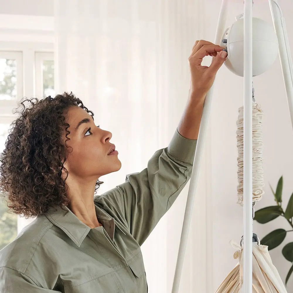 Der leise Motor, der dein Baby sanft in den Schlaf wiegt. In Dänemark entwickelt – für mehr Ruhe und bis zu 12 Stunden Schaukeln.