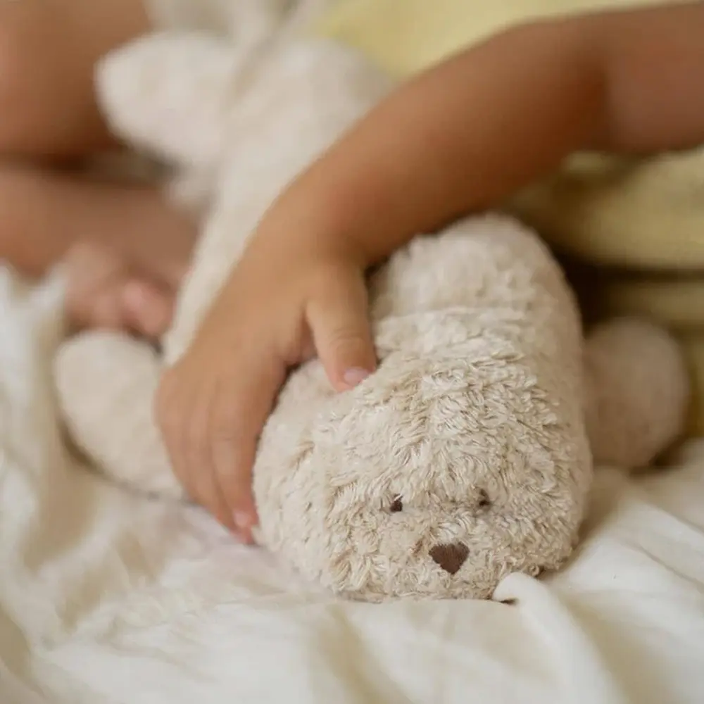 Das Kuscheltier besteht aus Bio-Baumwolle und wird in einem europäischen Studio handgefertigt – mit viel Liebe zum Detail und nach EU-Qualitäts- und Sicherheitsstandards.