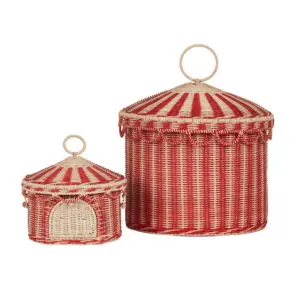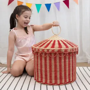 Der Circus Tent Spielzeugkorb bringt spielerische Ordnung ins Kinderzimmer. Handgefertigt aus Rattan, bietet er charmanten Stauraum.