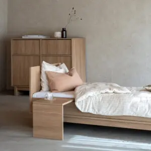 Kyo Betten wachsen mit Ihrem Kind – vom kompakten 120 x 70 cm Babybett bis zur erweiterten Version mit dem Junior Kit. Klare Linien und sorgfältige Verarbeitung sorgen für Ruhe und Beständigkeit.