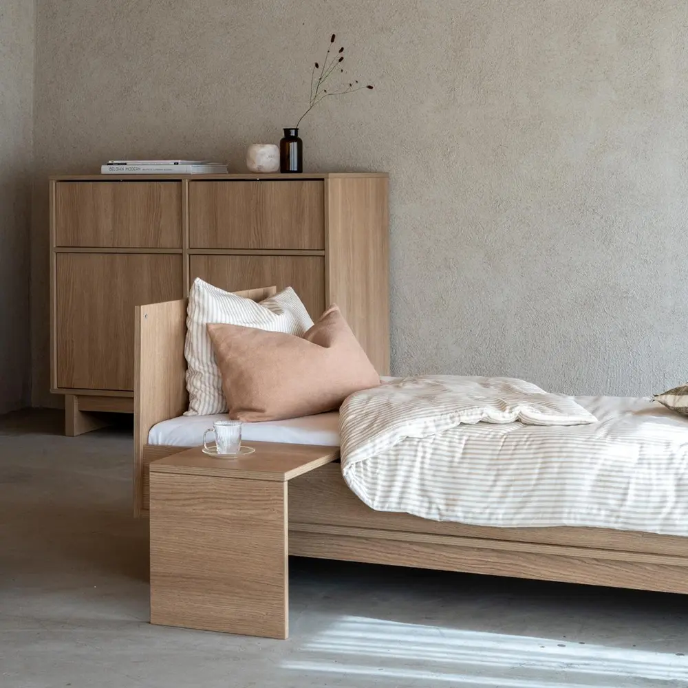 Mit dem Kyo Junior Umbauset kannst du dein Kyo Babybett (120 × 70 cm oder 140 × 70 cm) in ein großzügiges Juniorbett (170 × 70 cm) verwandeln. Es bietet Komfort bis zum zehnten Lebensjahr. Dank Bettverlängerung und praktischem Nachttisch unterstützt das Set jede Entwicklungsphase. Der warme, minimalistische Kyo-Stil bleibt dabei erhalten und sorgt für einen harmonischen, langlebigen Schlafplatz.