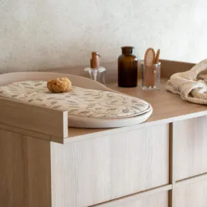 Der Wickelaufsatz ergänzt die Kyo Kommode und Kommode XL um eine große Wickelfläche. Mit warmen Holztönen und minimalistischem Design bietet er praktischen Komfort und bewahrt den zeitlosen, ruhigen Look des Möbelstücks.