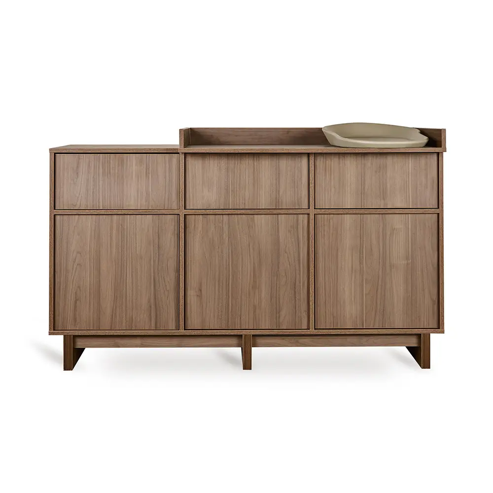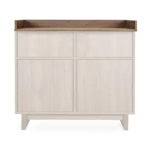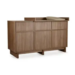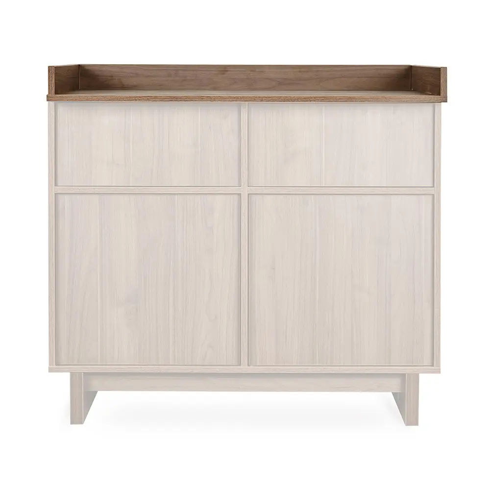 Der Kyo XL Wickelaufsatz verwandelt Deine Kyo Kommode in einen großzügigen, komfortablen Wickelplatz. Passend zur Kollektion vereint das Design warme Holztöne mit klaren Linien im angesagten Japandi-Stil, ein Mix aus skandinavischer Ruhe und japanischem Minimalismus. Der Aufsatz fügt sich nahtlos ein und bietet praktische Sicherheit. Wird er nicht mehr benötigt, lässt er sich rückstandslos entfernen, sodass Ihr Kinderzimmer dauerhaft elegant und funktional bleibt.