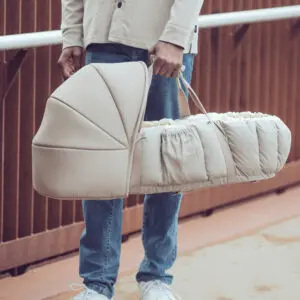 Ein Babynest, eine Babytragetasche und eine Spielmatte in einem stilvollen und praktischen Produkt.