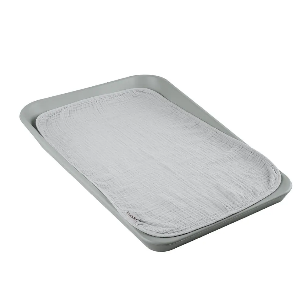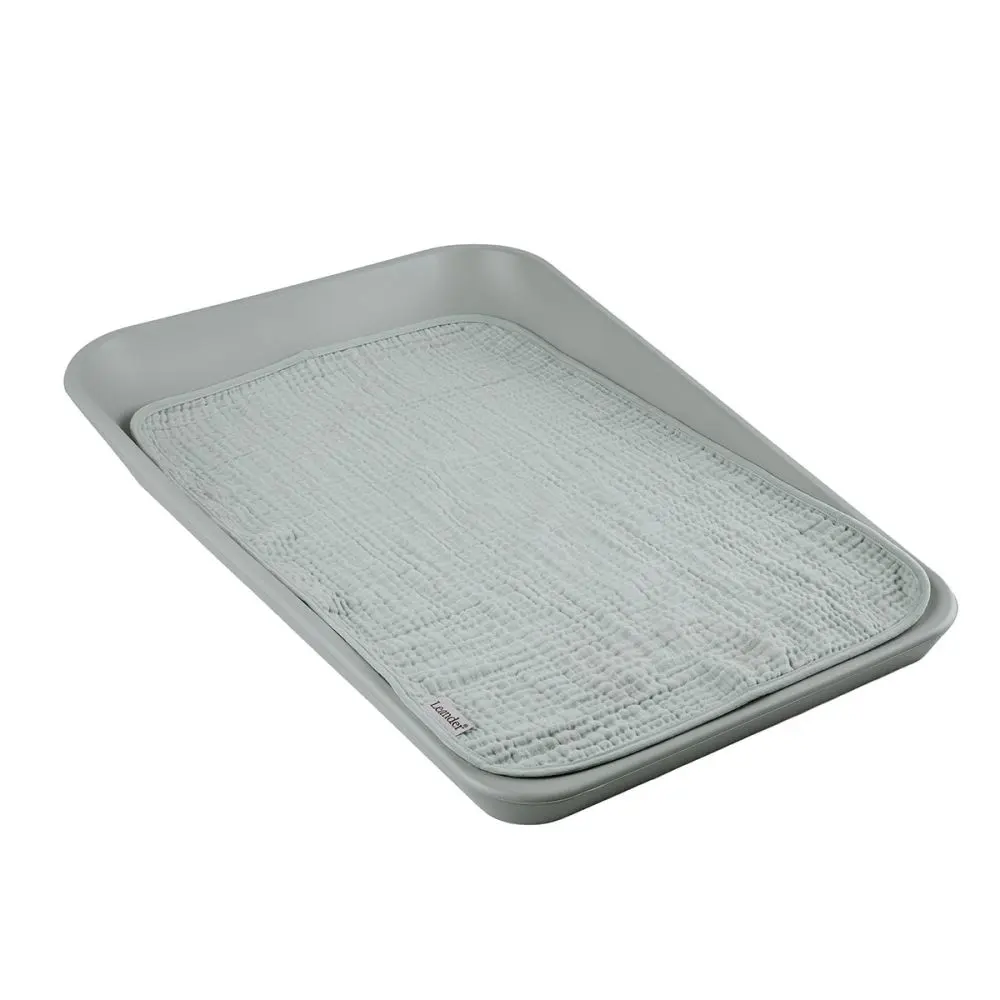 Bio-Musselin Wickeltuch-Set für Leander Matty™/Matty™ Mini. Extra weiche Lage zum Schutz der Wickelauflage. Zwei Farben, wendbar, bei 40°C waschbar und trocknergeeignet.