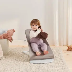 BabyBjörn – Wipstoel Bliss met Speelgoed – Googly Eyes – Mesh – Grey Beige
