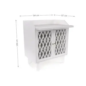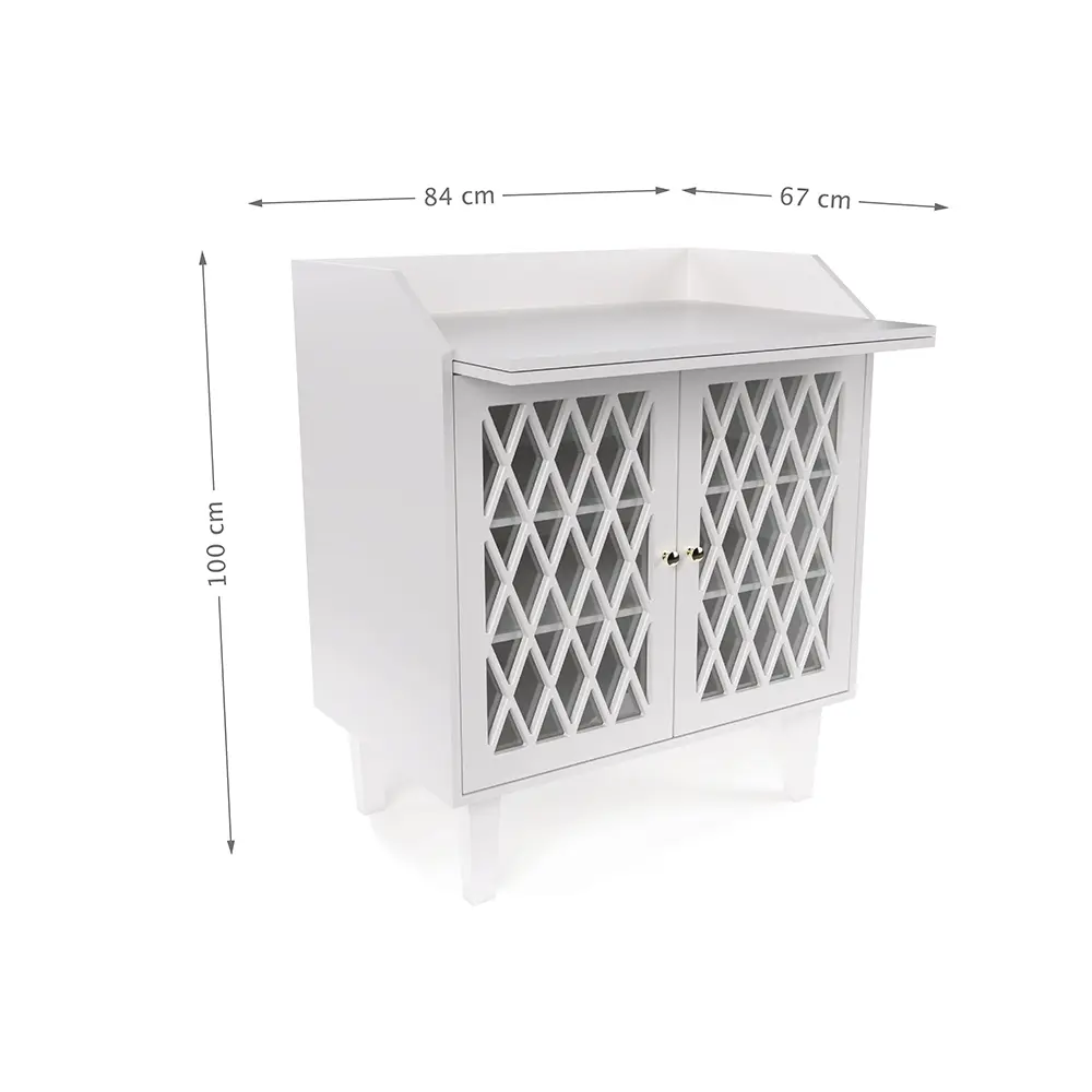 Een elegante commode met het iconische Harlequin-patroon, veel opbergruimte en een uittrekbaar blad. Een rustig, verfijnd meubelstuk voor de moderne babykamer.