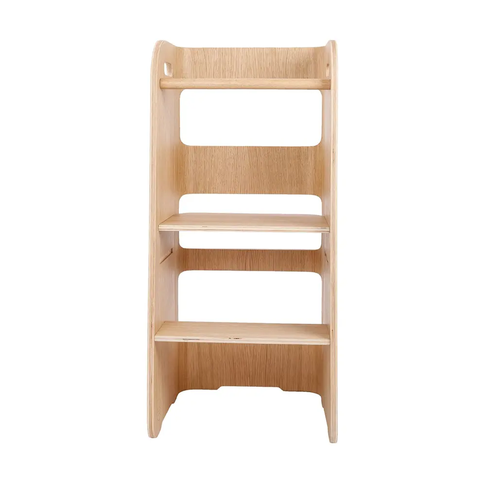Gemaakt van hoogwaardig berkenmultiplex met een elegante eiken afwerking, is de leertoren ontworpen voor veiligheid en lange levensduur, met een draagvermogen van 90 kg. Twee verstelbare hoogtes zorgen dat het meegroeit met je kind. Geschikt voor kinderen vanaf 12 maanden die zelfstandig kunnen staan, verandert deze mooi ontworpen leertoren dagelijkse routines in waardevolle momenten van samenzijn en leren.