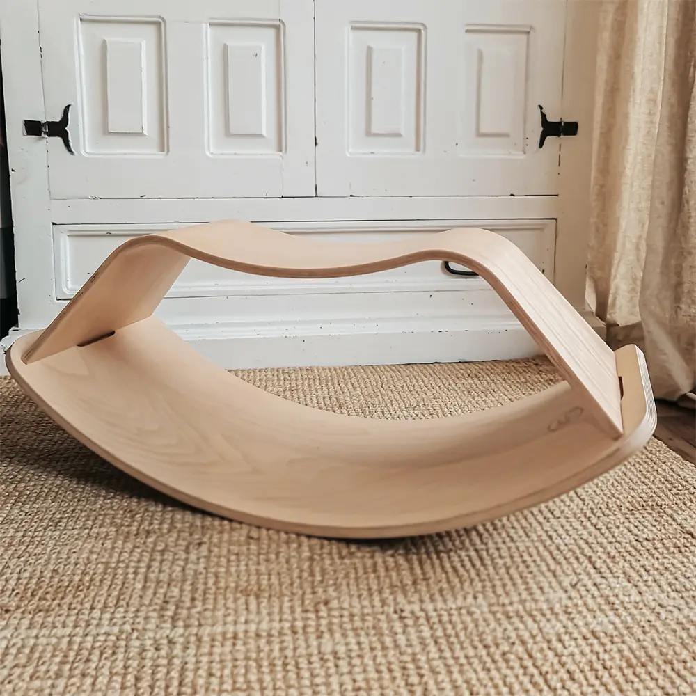 Zo kan het eenvoudig veranderen in een hobbelpaard, een krukje of zelfs een babywip met het zachte kussenaccessoire, waarmee ouders hun baby rustig in slaap kunnen wiegen. Elk onderdeel sluit naadloos aan dankzij het doordachte ontwerp en de hoogwaardige afwerking. Bovendien is alles gemaakt van FSC-gecertificeerd hout met gladde, kindvriendelijke oppervlakken. Door het modulaire ontwerp groeit het Curve Lab Balance Board mee met het gezin – van baby tot kleuter – en is het een van de meest veelzijdige en duurzame balanceerspeelgoedstukken op de markt.