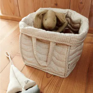 Stijlvolle opbergmand van Dear April (25x25x30 cm). Gewatteerd, gevoerd en perfect voor speelgoed, verzorgingsproducten en baby essentials.