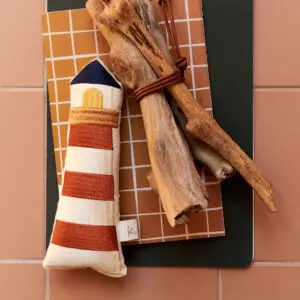 Bij het bewegen maakt de rammelaar een zacht belgeluid dat nieuwsgierigheid wekt en de motorische ontwikkeling ondersteunt. Gemaakt van hoogwaardige, ademende materialen, is dit speeltje veilig voor kleine handjes en mondjes. Het vuurtorenontwerp geeft de rammelaar een unieke, decoratieve uitstraling, passend bij de Scandinavische esthetiek van Dear April.