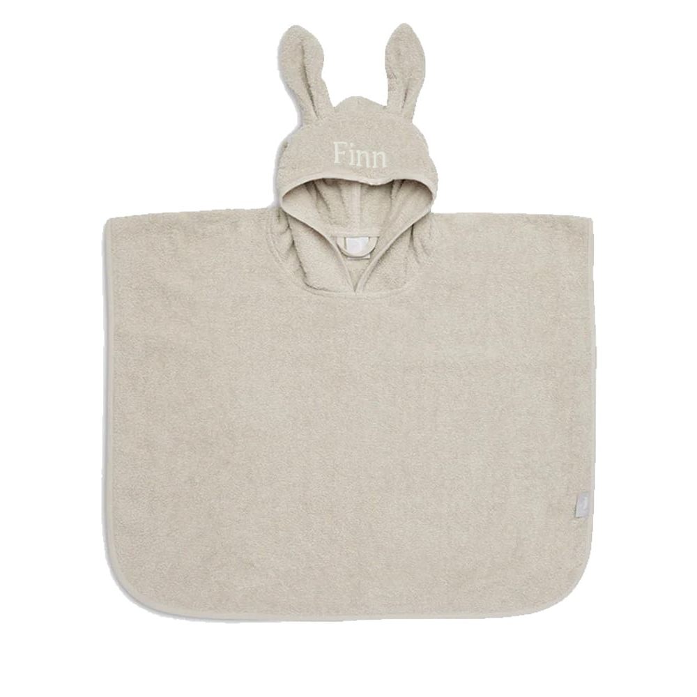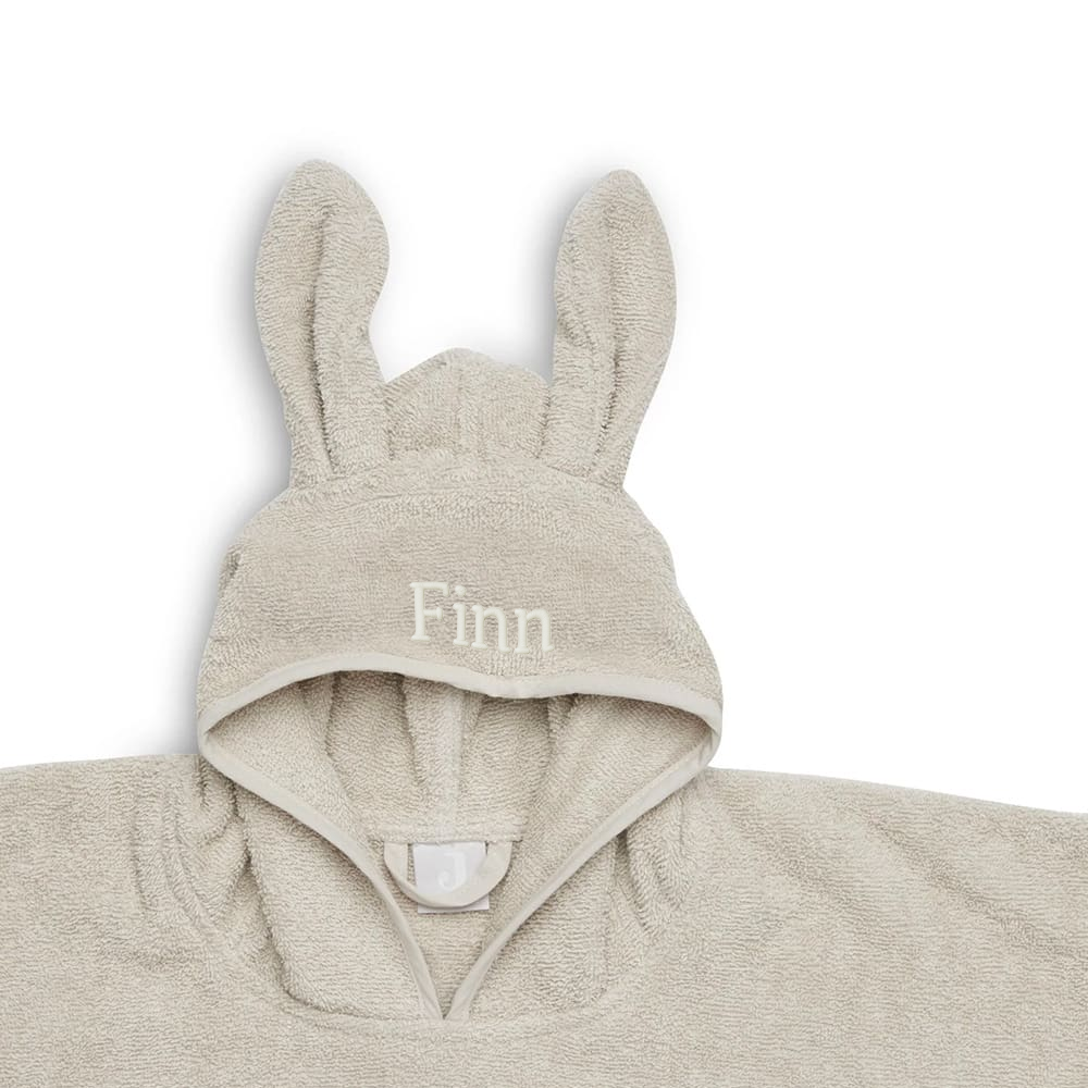 Zachte en absorberende badponcho met capuchon – ideaal voor na het badderen of op het strand. Dit product kan gepersonaliseerd worden met de naam van je kind, prachtig geborduurd.