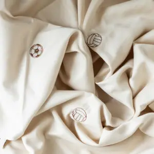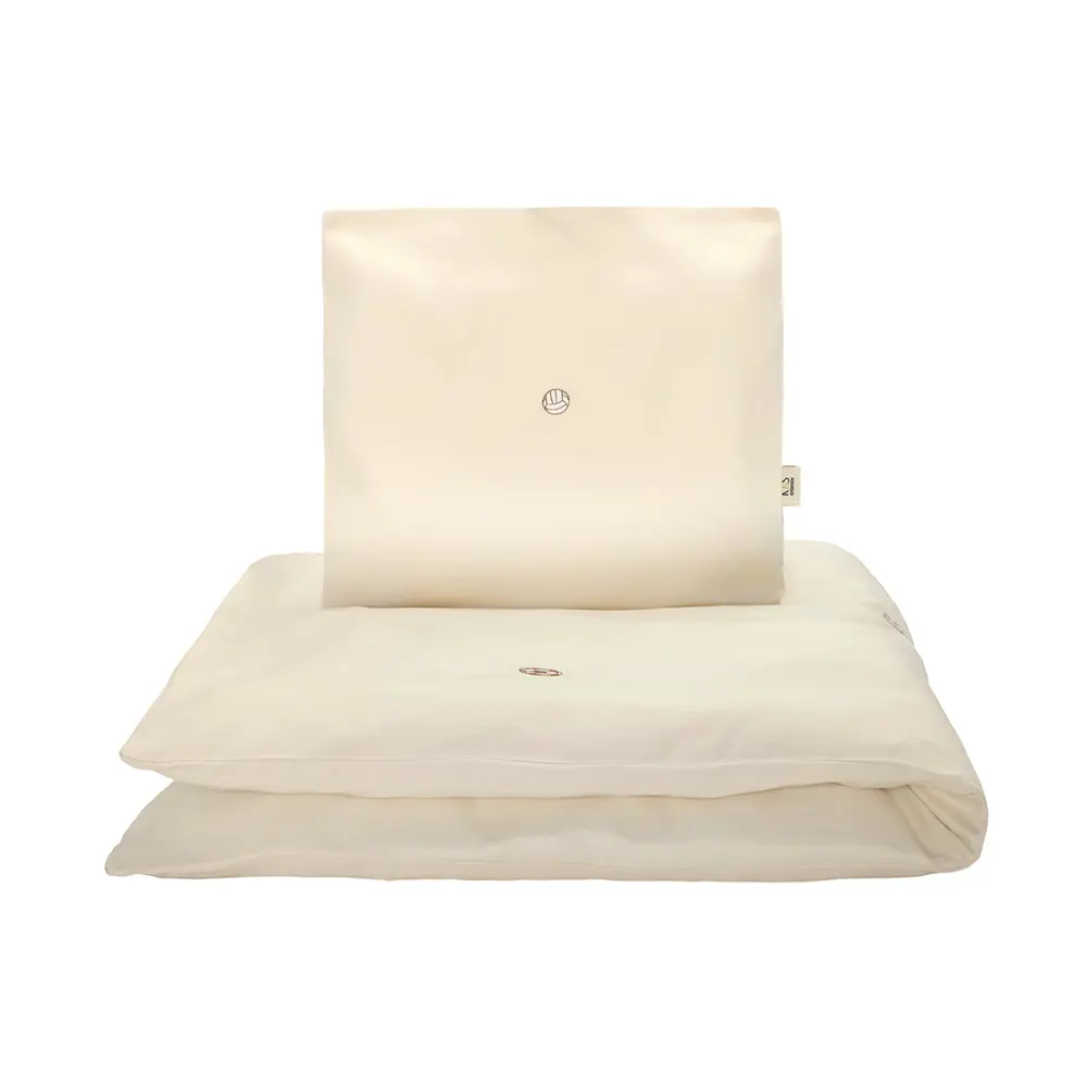 Een luxe junior dekbedovertrek van zachte, satijngeweven biologisch katoen in een warme crรจmetint, subtiel versierd met een geborduurd voetbalmotief. Zorgt voor een rustgevende uitstraling in de kinderkamer en heerlijk slaapcomfort na een dag vol avontuur.