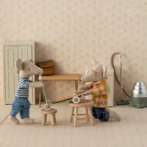 Deze schattige Maileg step is voorzien van houten details, een magnetisch handvat voor stevige grip en een elastiekje om de voetjes van je muisje op hun plek te houden โ perfect voor kleine avonturen onderweg!