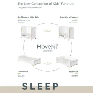 Het Naolima MoveMi® Babybed vormt het hart van de collectie. Met slechts één simpele beweging verandert het in een Box – ruimtebesparend en ideaal voor het dagelijkse gezinsleven. Met de speciale Ombouwset kan het bed bovendien worden omgevormd tot een veilige Co-Sleeper, zodat je je baby ’s nachts dichtbij kunt houden met comfort en zekerheid.