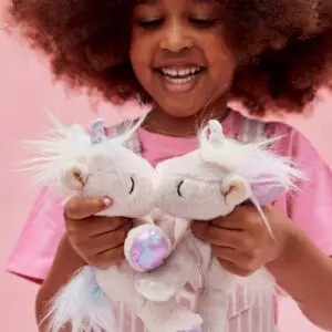 Deze magische Binky Baby Unicorn in Sparkle Pink is een zachte, handformaat knuffel met een subtiele rammel – perfect voor kleine handjes.