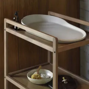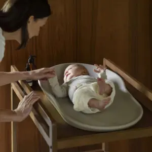 Het Mamee Verschoonmatje heeft een zacht, boonvormig ontwerp gemaakt van 100% EVA-schuim. Het is waterbestendig, gemakkelijk schoon te maken en biedt een veilige, antislip-oppervlakte voor het verschonen van luiers.