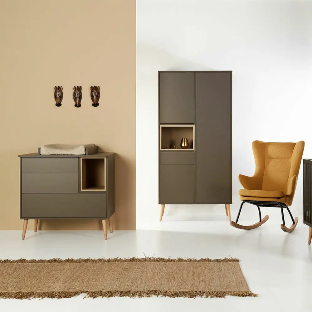Met de Cocoon Collectie creëert u een babykamer die uw unieke stijl weerspiegelt. Dit Europese design transformeert commodes en kasten in persoonlijke pronkstukken dankzij de verwisselbare nis-kleuren. Kies uit aardse tinten of gedurfde accenten voor uw eigen rustgevende oase. De mix van modern ontwerp en aanpasbare details brengt stijlvol ‘cocooning’ tot leven, gemaakt voor comfort, gecreëerd door u.
