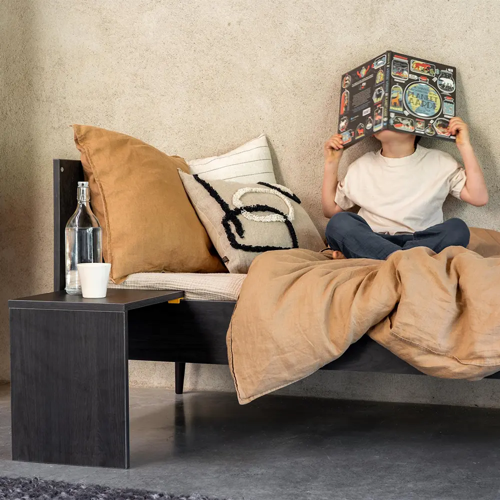 De Cocoon Junior Ombouwset verlengt je bed naar 170 x 70 cm. Inclusief een handig nachtkastje en bodemverlenging. Een optionele uitvalbeveiliging is beschikbaar. Een duurzame oplossing die jarenlang stijlvol met jouw kind meegroeit.