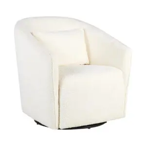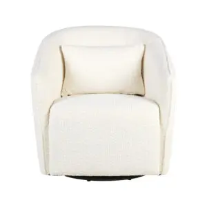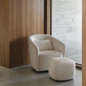 De draaistoel biedt 360° rotatie, soepele glijbewegingen en zachte, duurzame stoffen in tijdloze natuurlijke kleuren. Met het ondersteunende kussen is dit de perfecte combinatie van ultiem comfort en elegante stijl – ideaal voor de babykamer of woonkamer.