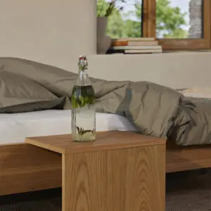 Deze bijzettafel met essenfineer is een functioneel en stijlvol meubelstuk dat perfect past bij het Hai No Ki Juniorbed. Houd belangrijke spullen altijd binnen handbereik, terwijl je de rustige en tijdloze uitstraling van de collectie behoudt.