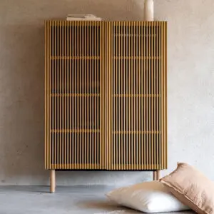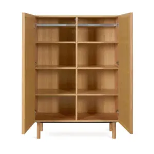 De Hai No Ki kledingkast combineert minimalistisch Japans design met praktische opbergoplossingen. Met massief eiken details, acht vakken en een aanpasbaar interieur brengt deze kast zowel stijl als functionaliteit in iedere kamer. Perfect voor het organiseren van kleding, speelgoed en accessoires.