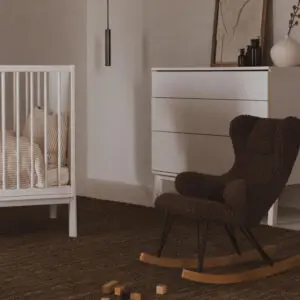 De Rocking Chair De Luxe voor Kids combineert comfort, stijl en een zachte schommelbeweging voor peuters. Bekleed met premium stof en perfect passend bij de volwassen versie, voegt het tijdloze elegantie toe aan elke babykamer of speelkamer. Maximale capaciteit 70 kg.