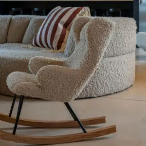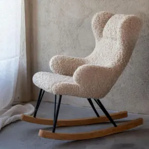 De Rocking Chair De Luxe voor Kids combineert comfort, stijl en een zachte schommelbeweging voor peuters. Bekleed met premium stof en perfect passend bij de volwassen versie, voegt het tijdloze elegantie toe aan elke babykamer of speelkamer. Maximale capaciteit 70 kg.