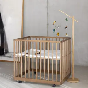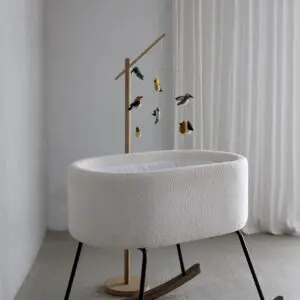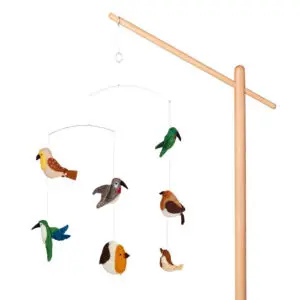 Voeg een dromerige sfeer toe aan de babykamer met de Quax babymobiel. Verkrijgbaar in betoverende designs zoals wolken, vogeltjes en zwanen. In combinatie met de Quax houten standaard wiegt de mobiel zachtjes heen en weer om je baby te kalmeren en te vermaken.