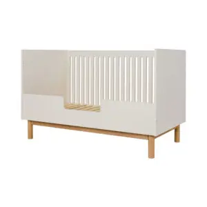 De uitvalbeveiliging voor het Quax Mood Babybed (140 x 70 cm) is afgewerkt met een kindvriendelijke, watergedragen lak en biedt extra veiligheid en comfort tijdens de overgang van babybed naar peuterbed.