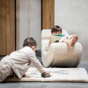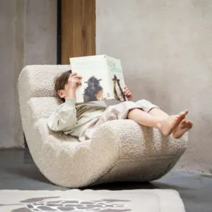 Voeg gezellige charme toe aan je ruimte met de Banana Rocking Chair in zachte teddy-stof. Perfect voor verhaaltjestijd of ontspanning, biedt het comfort voor zowel kinderen als volwassenen.