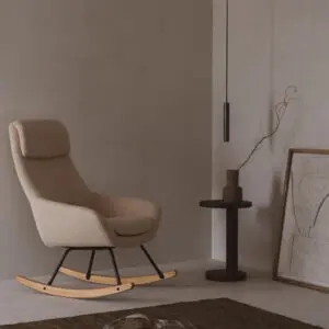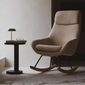 Modern comfort ontmoet elegantie in deze stijlvolle schommelstoel—ideaal voor gezellige bondingmomenten met je baby.