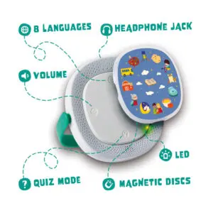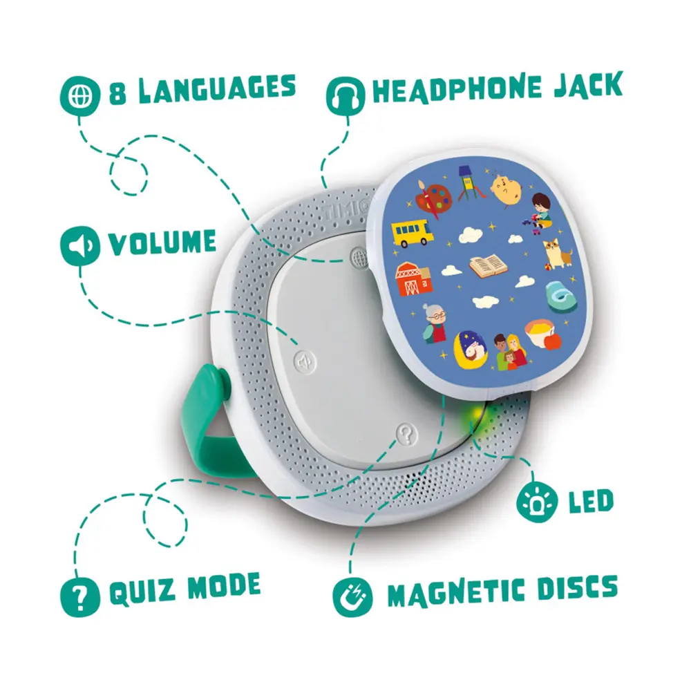 De TIMIO Player Starterset met 5 discs biedt een rijk aanbod aan liedjes, verhaaltjes en geluiden in meerdere talen. Een schermvrije audiospeler die kinderen al op jonge leeftijd zelf kunnen bedienen.