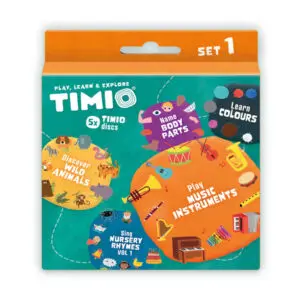 Ontdek de TIMIO Disc Packs, magnetische schijven vol liedjes, verhaaltjes en woordenschat voor de TIMIO Player. Elk setje voegt nieuwe themaโs en quizjes toe, zodat je kind keer op keer schermvrij kan leren.