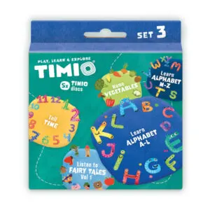 Ontdek de TIMIO Disc Packs, magnetische schijven vol liedjes, verhaaltjes en woordenschat voor de TIMIO Player. Elk setje voegt nieuwe themaโs en quizjes toe, zodat je kind keer op keer schermvrij kan leren.