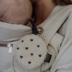 The Flow Amsterdam comforter on the go in Billy Beige is a smaller, travel-friendly version of the heartbeat comforter. It helps your baby feel calm and secure while you’re out and about. With the bow, you can attach it easily to a stroller or car seat, keeping it close without slipping away. The sound module includes two classic sounds: heartbeat and white noise.