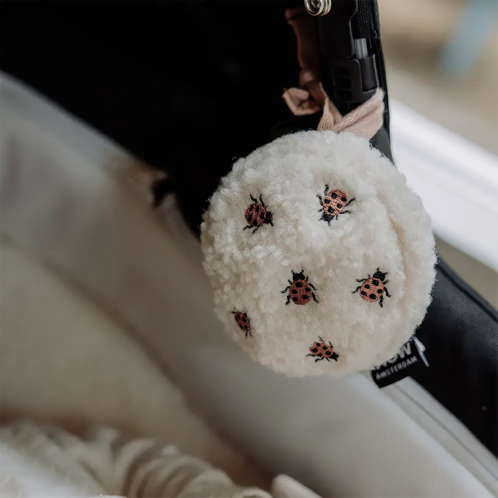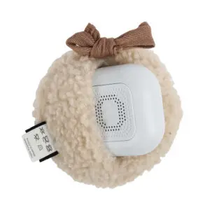 The Flow Amsterdam comforter on the go in Ted Beige is a smaller, travel-friendly version of the heartbeat comforter. It helps your baby feel calm and secure while you’re out and about. With the bow, you can attach it easily to a stroller or car seat, keeping it close without slipping away. The sound module includes two classic sounds: heartbeat and white noise.