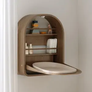 With its clever fold-out mechanism, the Kai Wall Changing Table opens smoothly to reveal a spacious and secure changing surface. When not in use, it folds back up into a sleek, compact cabinet that blends seamlessly into any modern interior. It’s ideal for apartments, small rooms, or anyone looking to maximize space without compromising on style.