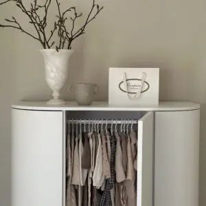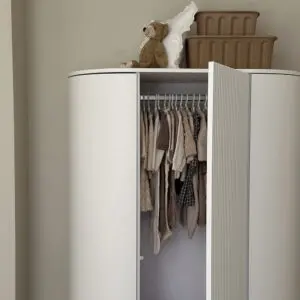 The Kai Wardrobe features soft-close doors, rounded corners, and a smooth matte finish – all carefully considered to blend effortlessly into any Scandinavian-inspired interior. Its subtle, calming presence works equally well in a nursery, hallway, or modern family bedroom.