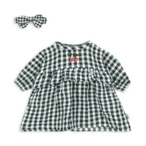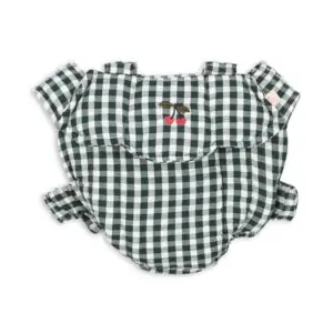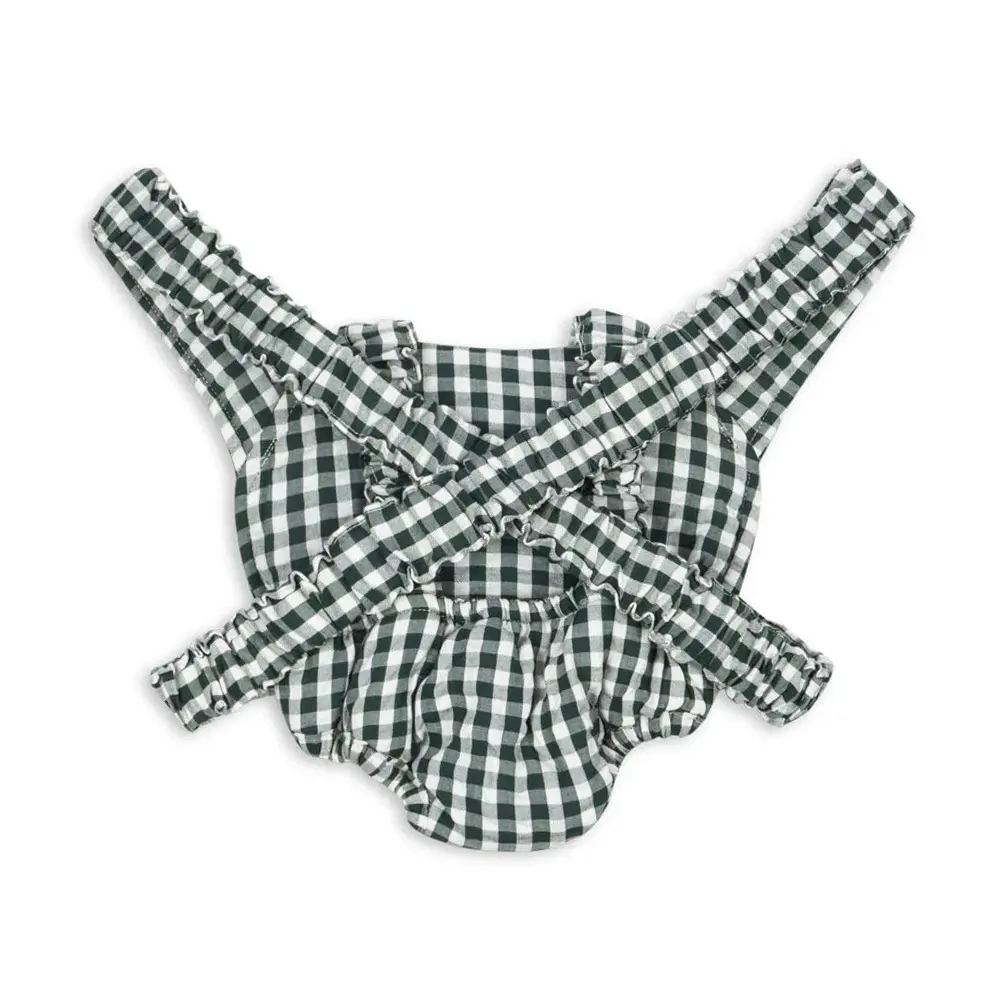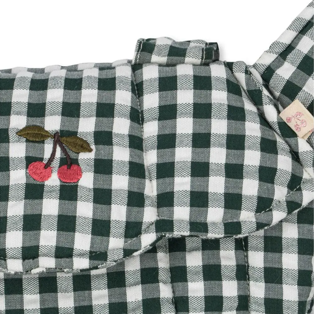 Soft cotton doll carrier with elastic straps in Green Check. Lightweight, comfy and easy to use.