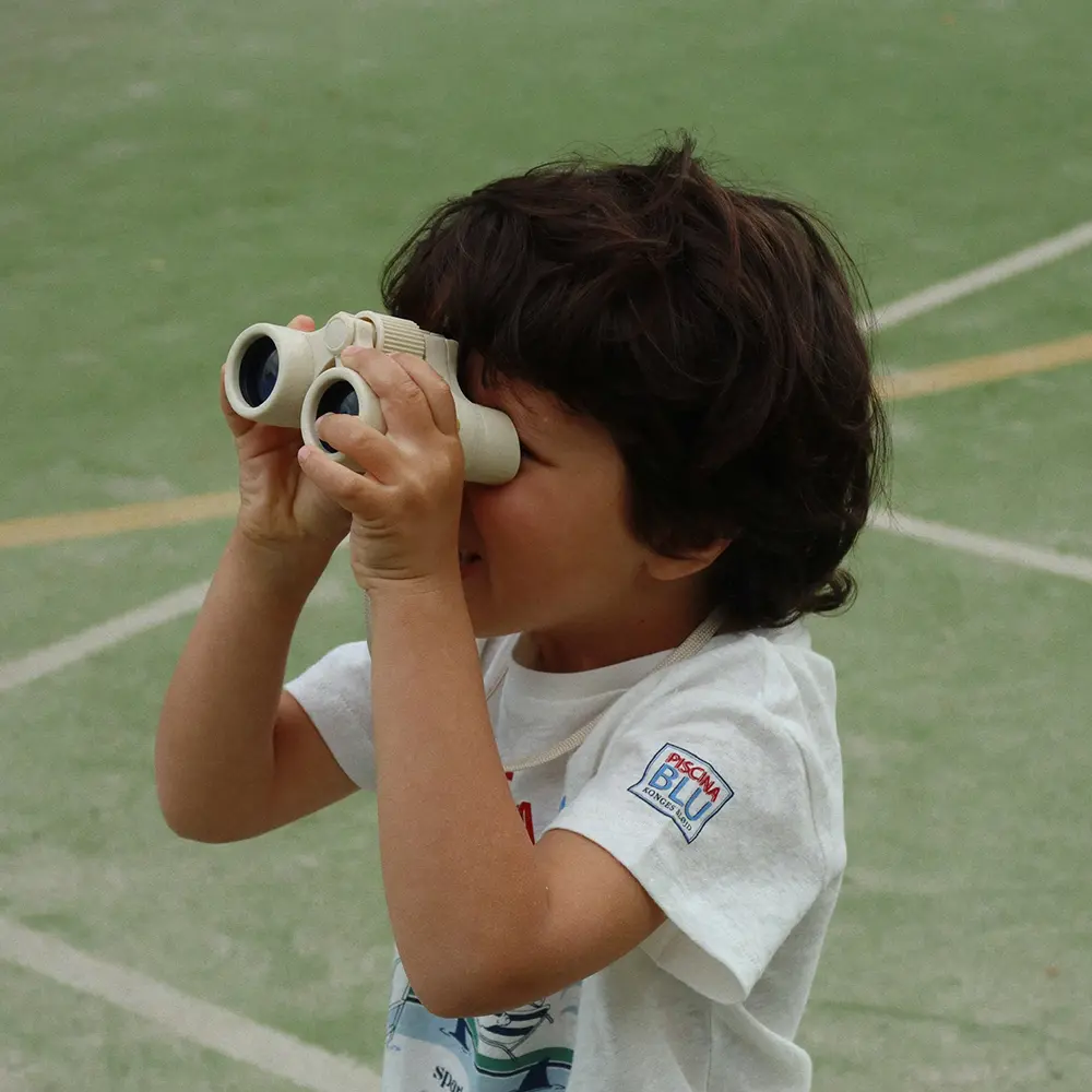 Children can use the binoculars to focus on trees, birds, rooftops or distant objects in the playground. Adjusting the focus wheel teaches them to slow down and look carefully at what they see. It is a simple tool to make walks, trips and garden time feel more engaging.