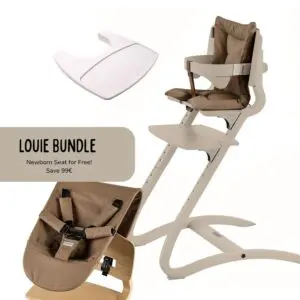 Complete your baby’s dining setup with the Leander Louie High Chair Bundle. Includes chair, tray, safety bar & cushion – plus a FREE newborn seat worth €99. Do you wish to receive different colors of the tray, cushion or highchair? Please feel free to add this to the comment field during checkout.