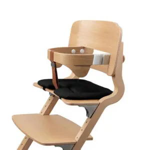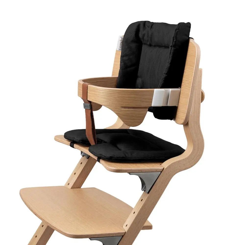 A soft 2-part highchair cushion in Black for Leander highchairs, made to add comfort, support and a calm look around the table.