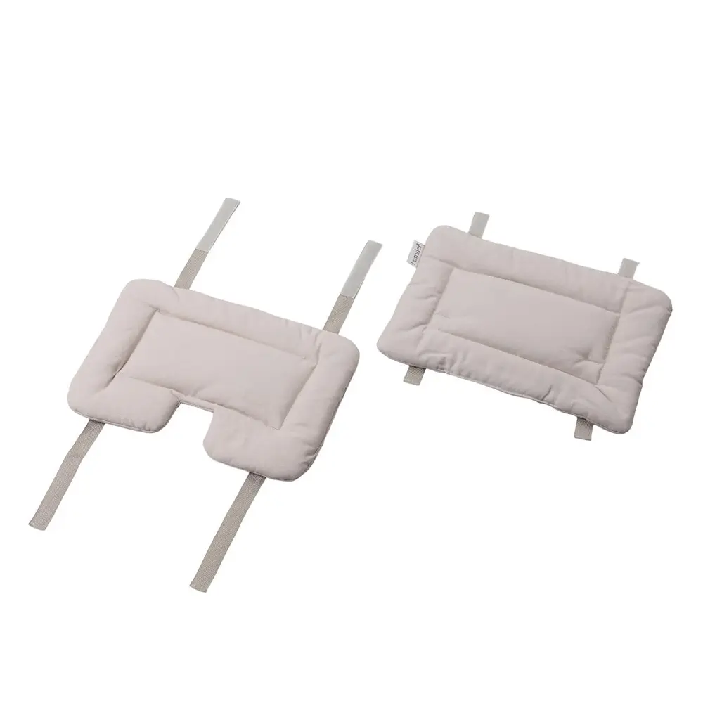 The cushion is made from 100% organic cotton. Filling: 100% polyester and is easy to place on the chair. The 2-part design includes both a seat cushion and a back cushion, making it easy to adapt as your child grows from the first meals to later years at the table. with dimensions of 22×33 / 23×32,5 cm, it supports the chair’s form while helping your child sit comfortably and securely.